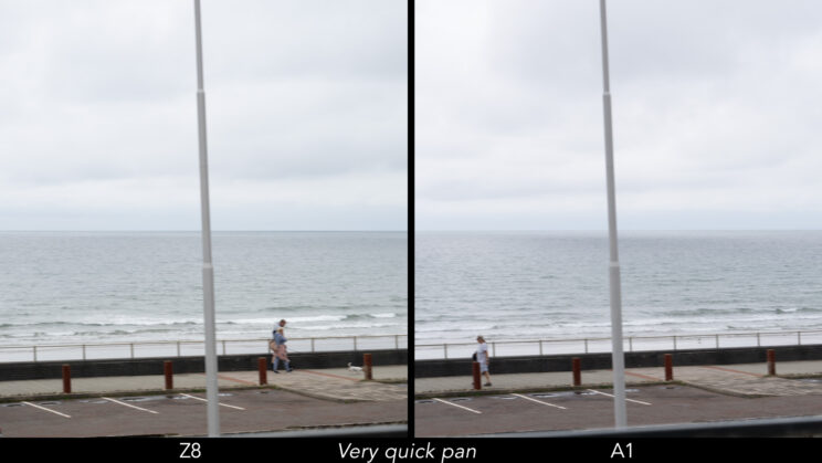 卷帘快门虽然不如照片那么令人印象深刻,但对于无反光镜相机来说仍然处于领先地位。快速平移时,A1 的失真稍多,但差异很小。